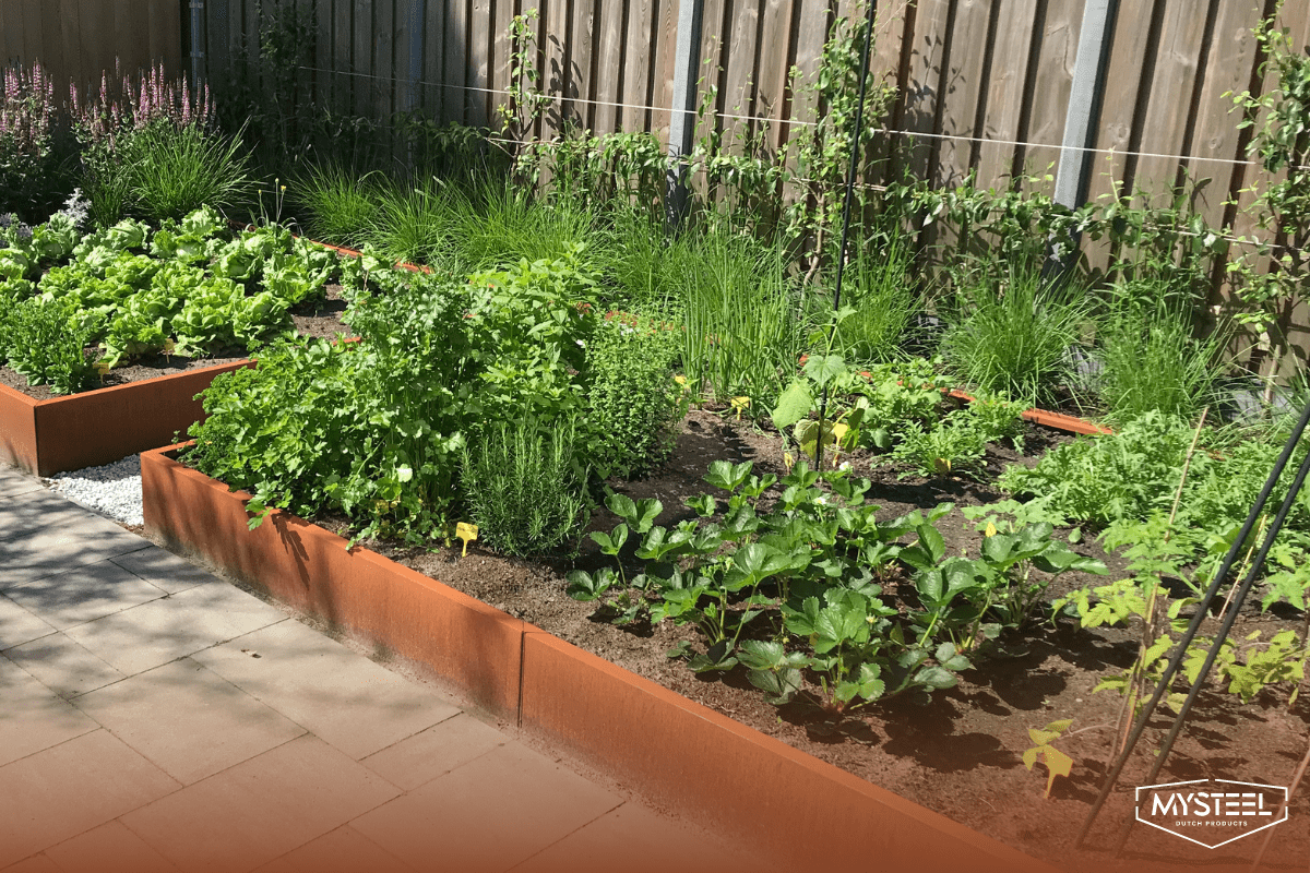Стоманата кортен е перфектна за градински сандъци благодарение на дългия си живот, красивия си вид и лесната си поддръжка. Този материал помага да се загрее почвата по-бързо, което е полезно за растежа на растенията. Освен това, ръждивият вид на стоманата кортен придава на градината ви специален характер.