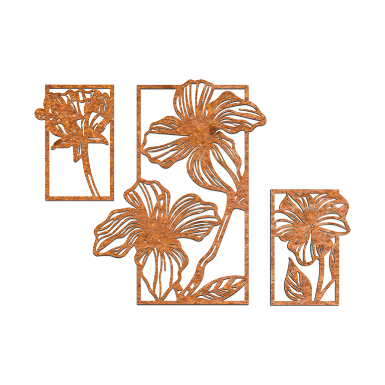Тази стенна декорация е изработена от висококачествена стомана Corten-A. Този вид метал има уникалното свойство да образува много плътен оксиден слой (ръждясал слой). Процесът на ръждясване е невъзможен. Поради плътния оксиден слой, по-дълбокият материал е защитен от кислород, което значително забавя окисляването, докато корозията продължава. Стенната декорация се доставя неръждясала, в сив метален цвят. Процесът на ръждясване започва през първите 2 месеца, за което не е необходимо никакво третиране. По време на процеса на ръждясване продуктът може да оставя следи.