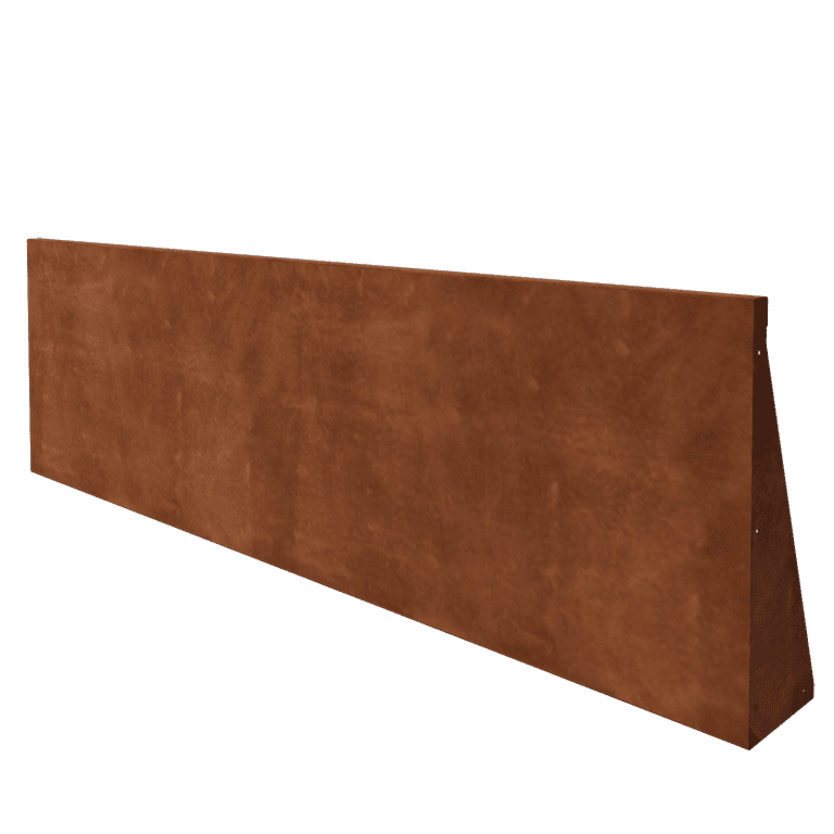Стените за обратно налягане се изработват от висококачествена стомана Corten-A. Този вид метал има уникалното свойство да образува много плътен оксиден слой (ръждясал слой). Преминаването на ръжда е невъзможно. Плътният оксиден слой защитава по-дълбокия материал от кислород, което значително забавя окисляването, докато корозията продължава. Стените за обратно налягане се доставят неръждясали, в сив метален цвят. Процесът на ръждясване започва през първите 2 месеца, за което не е необходимо лечение. По време на процеса на ръждясване стените могат да оставят следи. Corten стомана е метална сплав, която се състои от желязо, към която са добавени мед, фосфор, силиций, никел и хром.