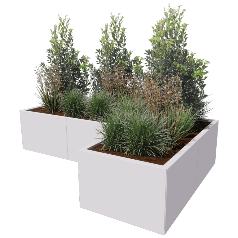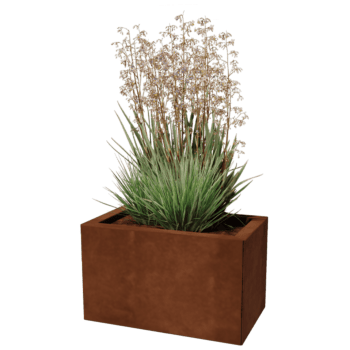 Тази саксия е модулна стоманена саксия, която се доставя като комплект за сглобяване. Саксията се изгражда от отделни панели и ъглови елементи. Саксиите могат да се свързват напълно незабележимо. Няма видими крепежни елементи. Благодарение на нашата модулна система, са възможни и много големи размери. Чрез използването на ъглови елементи са възможни уникални форми, които не могат да бъдат намерени стандартно никъде другаде. Вижте ръководството за повече информация.