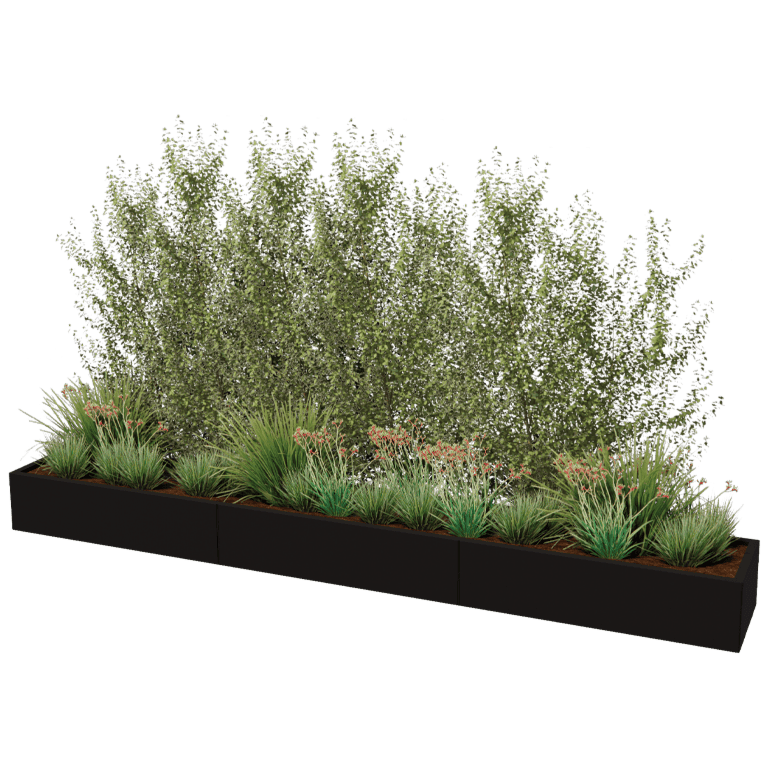 Тази саксия е модулна стоманена саксия, която се доставя като комплект за сглобяване. Саксията се изгражда от отделни панели и ъглови елементи. Саксиите могат да се свързват напълно незабележимо. Няма видими крепежни елементи. Благодарение на нашата модулна система, са възможни и много големи размери. Чрез използването на ъглови елементи са възможни уникални форми, които не могат да бъдат намерени стандартно никъде другаде. Вижте ръководството за повече информация.