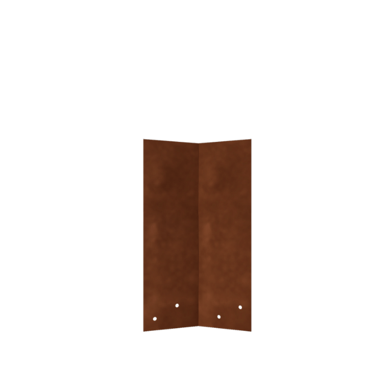 Тази свързваща плоча е изработена от висококачествена стомана Corten-A. Този вид метал има уникалното свойство да образува много плътен оксиден слой (ръжда). Преминаването на ръжда е невъзможно. Поради плътния оксиден слой, по-дълбокият материал е защитен от кислород, което значително забавя окисляването, докато корозията продължава. Свързващата плоча се доставя неръждясала, в сив метален цвят. Процесът на ръждясване започва през първите 2 месеца, за което не е необходима обработка. По време на процеса на ръждясване бордюра може да остави следи. Corten стомана е метална сплав, която се състои от желязо, към която са добавени мед, фосфор, силиций, никел и хром.